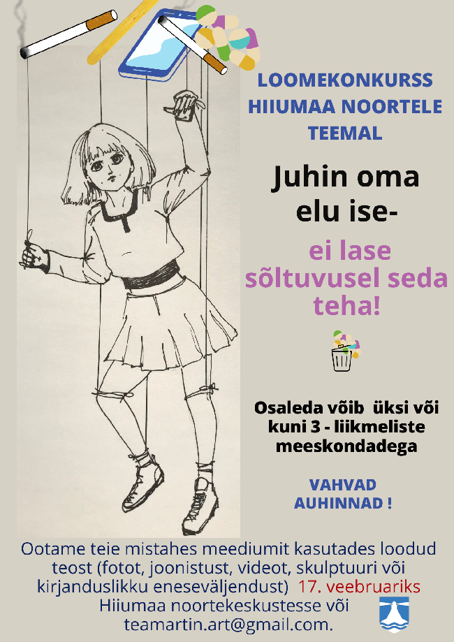 Anname teada, et 13.02-17.02.23 toimub Hiiumaa ennetusnädal, mille raames leiavad aset maailmakohvik, omaloomingu konkurss "Juhin ise oma elu - ei lase sõltuvusel seda teha" ja infosündmus veebis.